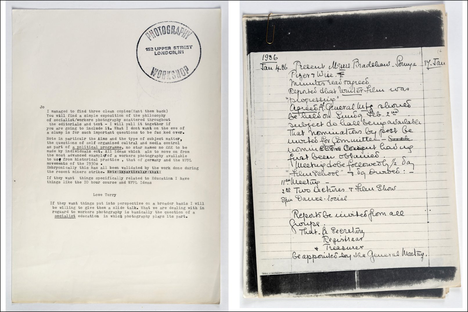 Terry Dennett was the long-time collaborator of Jo Spence. They worked together on many of Spence’s most iconic projects and also established collective projects such as Photography Workshop and were involved in the setting up of Cameraworks Journal . Following her death in 1992 Terry was entrusted with her work and set up the Jo Spence Memorial Archive in his flat in Islington where they had once lived together, ensuring her memory was not forgotten. Terry was also a writer, historian and activist working on his own projects such as ‘Sleeping Rough’, which documented the homeless. Towards the end of his life Terry entrusted much of Spence’s archive to institutions that he felt would maintain Spence’s legacy and following his death the remaining material, which I think of as ‘Terry’s Stuff’, was deposited at the Mayday Rooms.